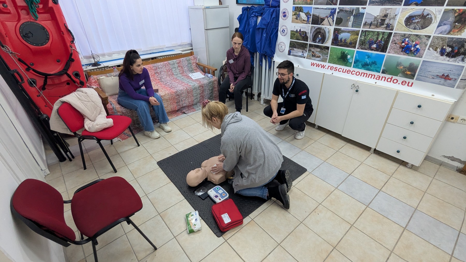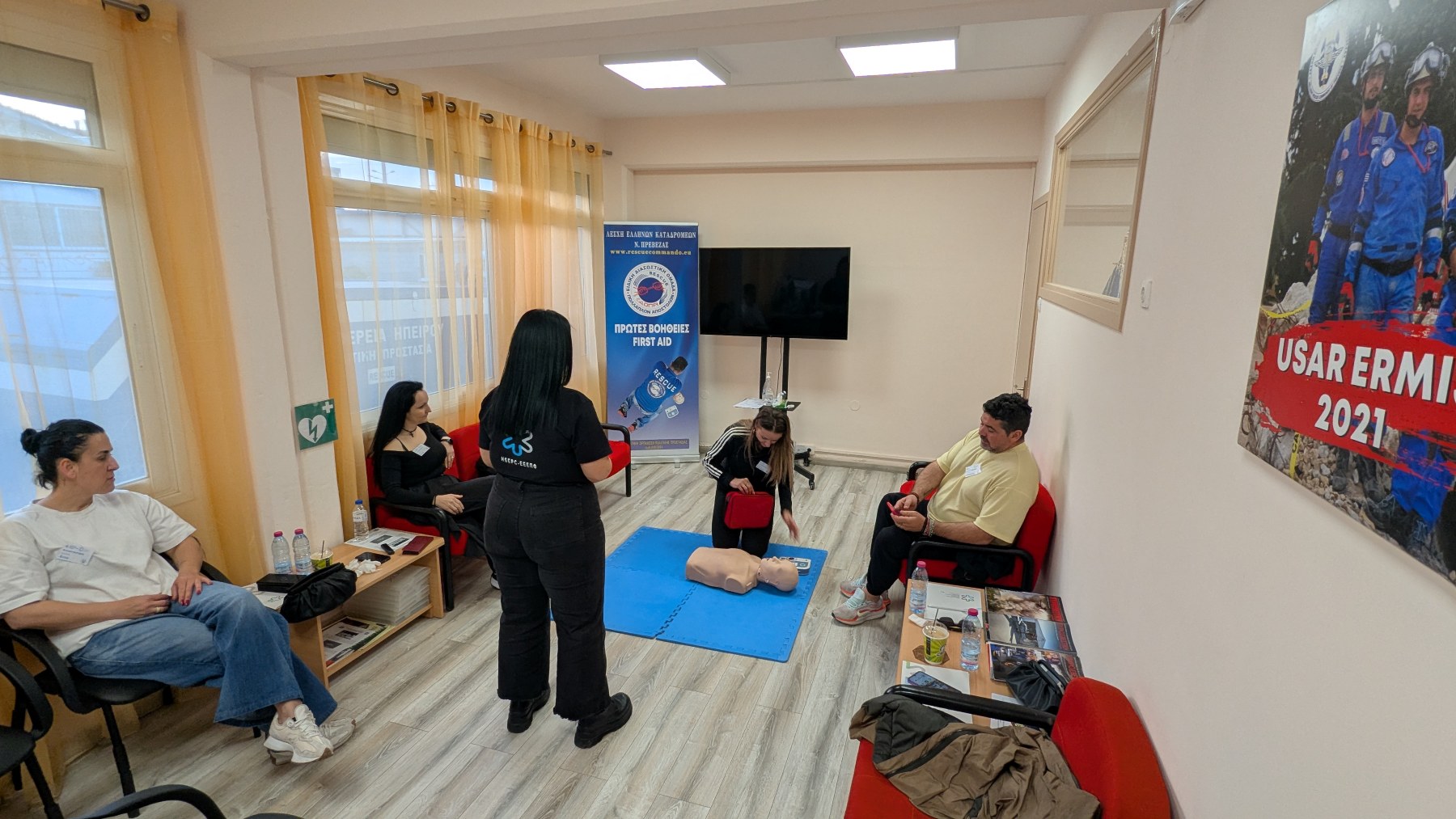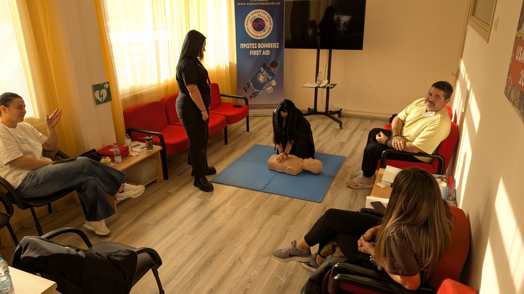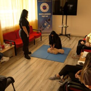 Κατά τη διάρκεια της εκπαίδευσης, οι συμμετέχοντες είχαν την ευκαιρία να αποκτήσουν θεωρητικές γνώσεις αλλά και πρακτική εξάσκηση στην παροχή πρώτων βοηθειών και στην εφαρμογή ΚΑΡΠΑ, ενισχύοντας την ετοιμότητά τους να ανταποκριθούν σε επείγουσες καταστάσεις.