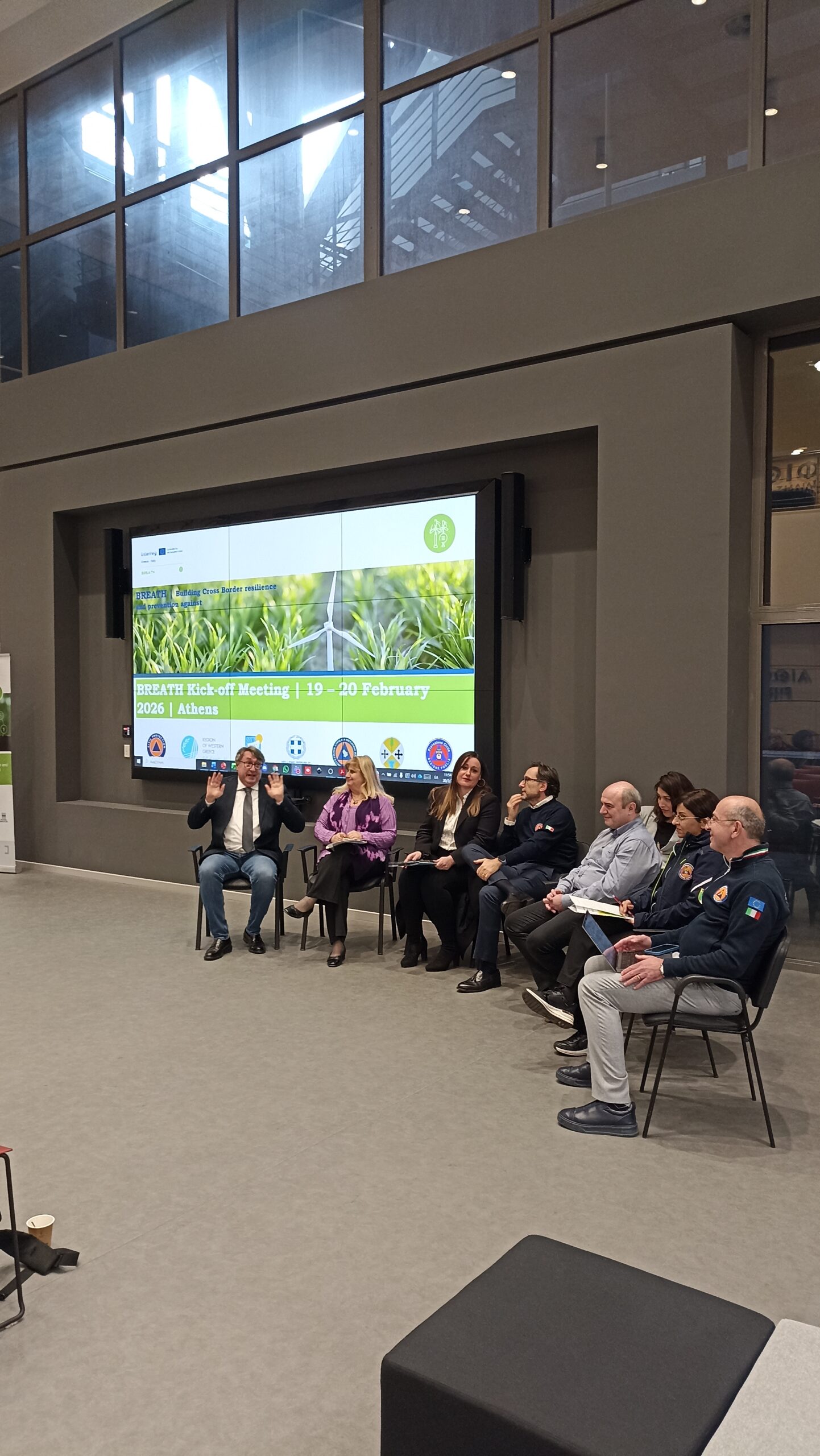 Η διήμερη εναρκτήρια συνάντηση του ευρωπαϊκού έργου: BREATH – Building Cross-Border Resilience and Prevention against Natural and Environmental Hazards πραγματοποιήθηκε στην Αθήνα στις 19 και 20 Φεβρουαρίου 2026 , στις εγκαταστάσεις του Υπουργείου Κλιματικής Κρίσης και Πολιτικής Προστασίας.